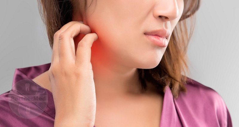 Массивный гнойный процесс сопровождается лихорадкой, высокой температурой до 41 гр.С. , слабостью. Флегмоны лица и шейной области могут приводить к затруднению дыхания, изменению конфигурации шеи или лица.